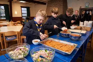 Wir haben den Anspruch, für Kinder und Jugendliche so zu kochen, dass sie Freude am Essen haben – und das mit frischen Zutaten aus der Region, die saisonal und biologisch angebaut wurden. Diese Selbstverpflichtung hat sich der BdP vor über 20 Jahren selbst in seiner Ernährungscharta gegeben. Auf Lebensmittelunverträglichkeiten wird genauso eingegangen wie auf besondere Wünsche – mit wenig Fleisch, viel Gemüse und ganz viel Liebe und Herzblut zum Handwerk. Und das klappt so gut, dass die Kinder zum Dank auch mal ein Ständchen für den Koch singen.