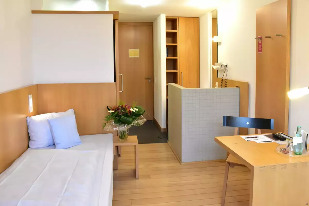 44 Einzelzimmer, 12 Zweibettzimmer (getrennt stehende Betten), 5 Dreibettzimmer (getrennt stehende Betten), 1 Appartement (unterteilt in 3 Zimmer mit insg. 5 Betten).