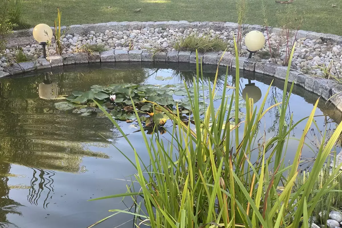 Der Reiterhof verfügt über einen großen Naturschwimmteich, der direkt über die Terrassen vom Wohnzimmer, als auch von der Sauna begehbar ist. Besonders Nachts nach einem Saunagang ist der Naturpool herrlich erfrischend. Dieser steht den Gästen exklusiv zur Verfügung.