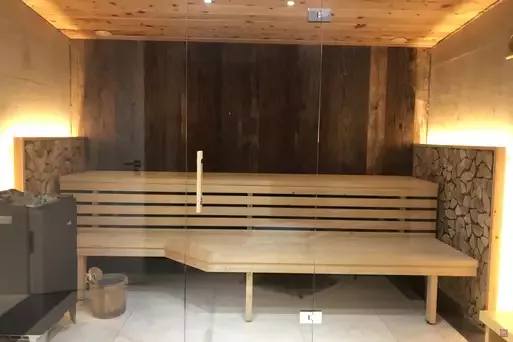 Die moderne, große Sauna bietet Entspannung pur, die man gerne am Naturteich ausklingen lassen kann.