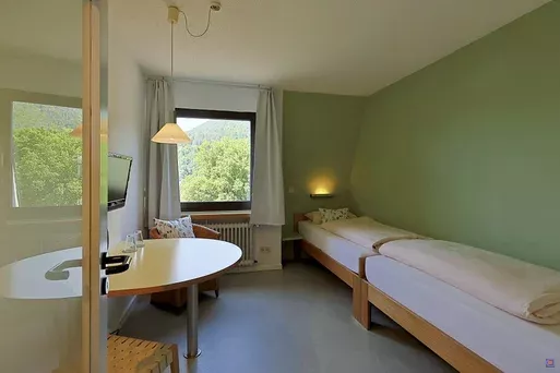 Die Unterkunft ist teilweise behindertengerecht: Gästezimmer und Restaurant und großer Seminarraum Eiche