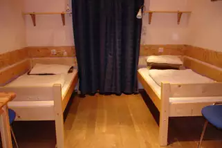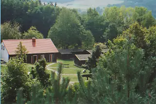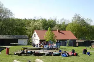 In 10 dänischen Holzblockhütten sind jeweils zwei 4-Bettzimmer, ein kleiner Aufenthaltsraum und eine angegliederte Toilette vorhanden. Darüber hinaus gibt es ein Übernachtungshaus mit 5 Doppel-, 2 Einzel und zwei 6 bis 8-Bett-Zimmer.