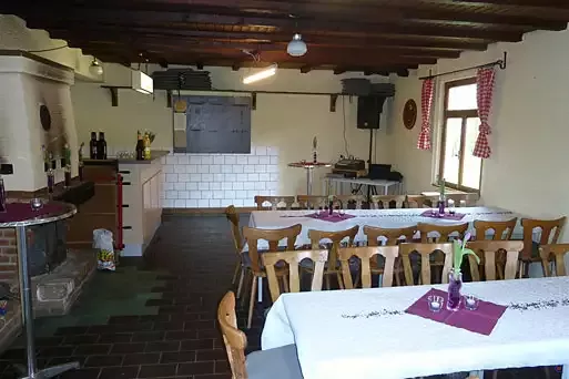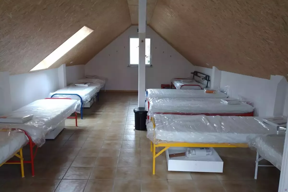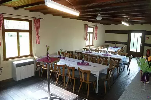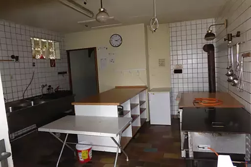 Platz für 200 Personen, fließend Wasser, Strom, Sanitäranlagen, Kochstelle, Dusche, Aufenthaltsraum