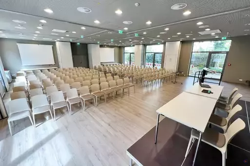 Die hellen, modernen Tagungsräume lassen sich auch zu größeren Tagungsräumen zusammenschließen.