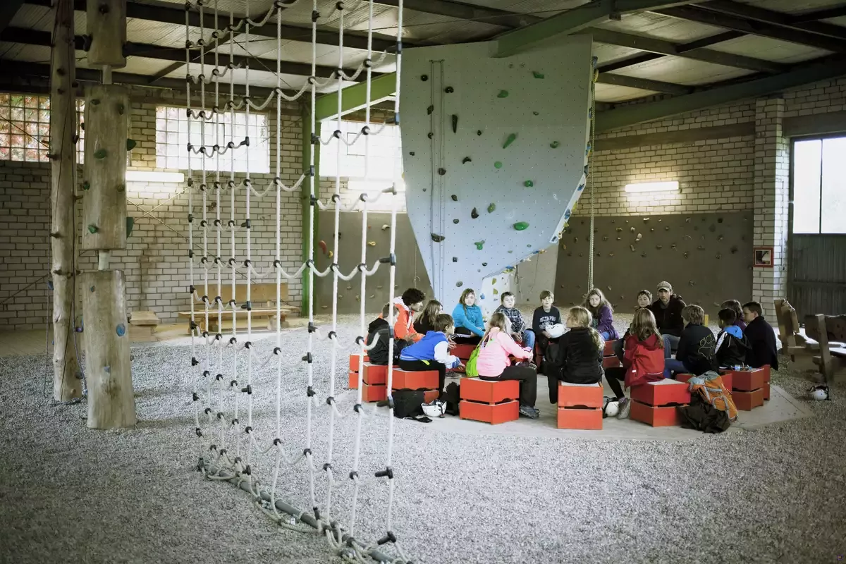 Schon in unserer Jugendherberge geht der Kletterspaß los. Dafür sorgen unsere eigene Kletterhalle mit Boulderwand und Niedrigseilelementen auf dem Gelände. Hier heißt es, die eigenen Grenzen zu überwinden. Alles was wir von dir brauchen, ist ein entsprechender Qualifikationsnachweis. Für den Kick sorgen wir.