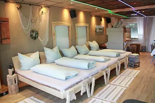 Das Danubio sind herausragende, natürliche, entspannte, technisch moderne Mehrzweckräume in einem ganz eigenen beruhigenden Stil. Durch das modulare Raumkonzept können wir die Möbel und Betten so stellen, dass es für Euren Anlass bestens geeignet ist.