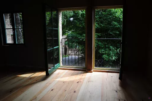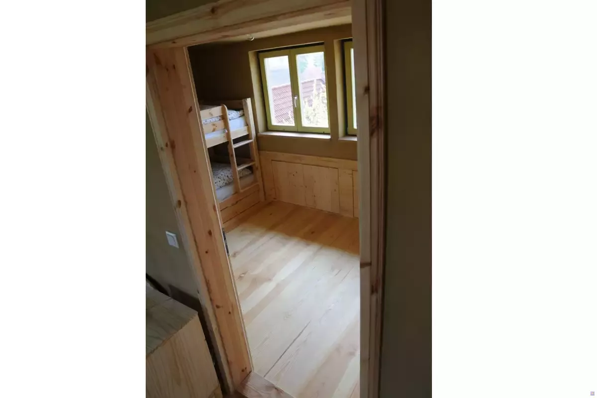 Im Obergeschoss befinden sich zwei Ferienwohnungen mit insgesamt drei Räumen, in denen bis zu acht Personen Unterkunft finden können. Die durch den Seminarofen beheizten Wandheizungen in den Lehmwänden bewirken in der kalten Jahreszeit ein besonders angenehmes Raumklima.