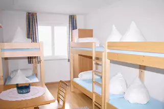 2-, 4-, 6-Bettzimmer sowie einem 8-Bettzimmer. Die Zimmer sind teilweise ausgestattet mit Du/WC, Safe und TV oder Etagen Du/WC. W-Lan gratis im ganzen Haus.