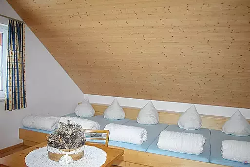 Des Weiteren stehen unseren Gästen der schöne Speisesaal, das „Stüble“ für Betreuer, unser Mehrzweckraum (Party-, Musik- und Seminarraum), die Spielehöhle mit Flipper, T-Tennis etc., unser Trockenraum mit Ski- und Handschuhtrockner, der Skikeller, unser Bewegungsraum sowie unsere Alpen-Wellness-Oase mit Aroma-Dampfbad, Therapeutischer Infrarotkabine, Finnischer Sauna, Tepidarium, Kneippbereich und Entspannungsraum zur Verfügung.