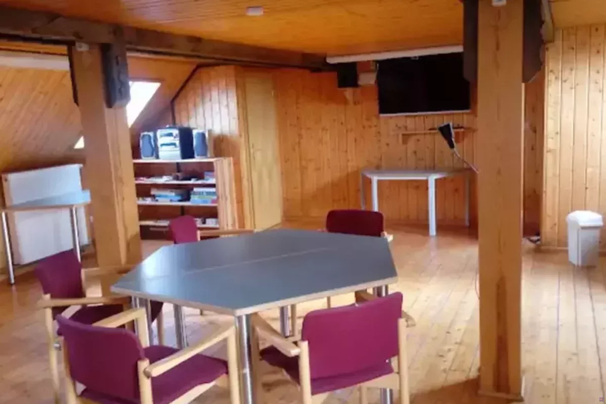 Das Haus befindet sich auf dem Pfarrhof. Sitzdach und Grillmöglichkeiten sind vorhanden. Spielgeräte bitte selbst mitbringen! Fußball und Volleyball sind auf Sportplatz möglich.