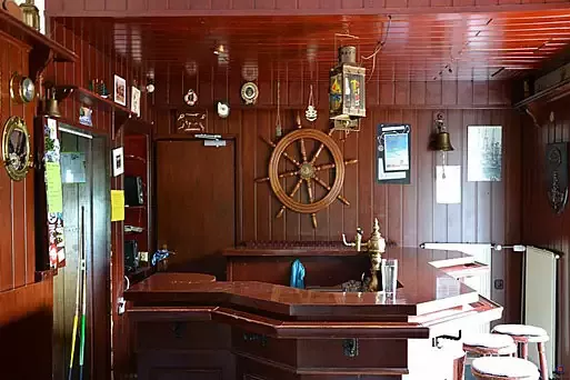 - Bei unserer Bar handelt es sich um die ehemalige Gaststätte des Hotels, ganz unverändert "friesisch-rustikal", ebenfalls mit kleiner Theke und Barhockern.
