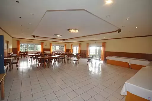 - Unser Saal, der größte und hellste Raum des Gästehauses mit direktem Zugang zu unserem Innenhof, bietet reichlich Platz und eignet sich als Party-, Spiele-, Show-, Tanz- oder auch als Speiseraum für große Gesellschaften.