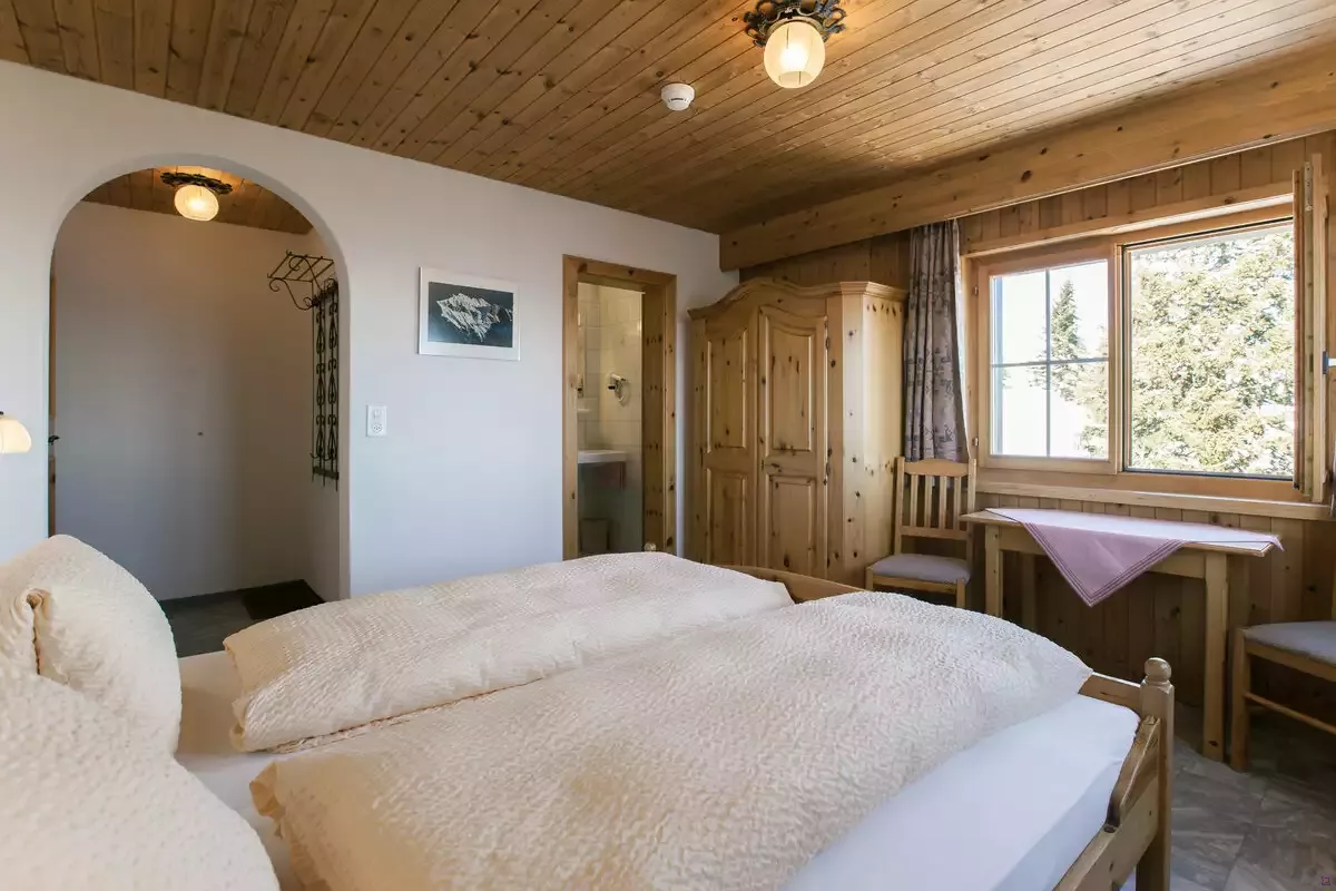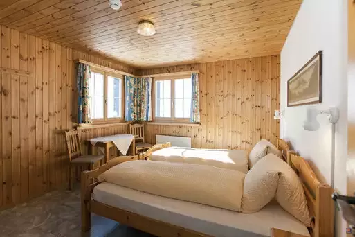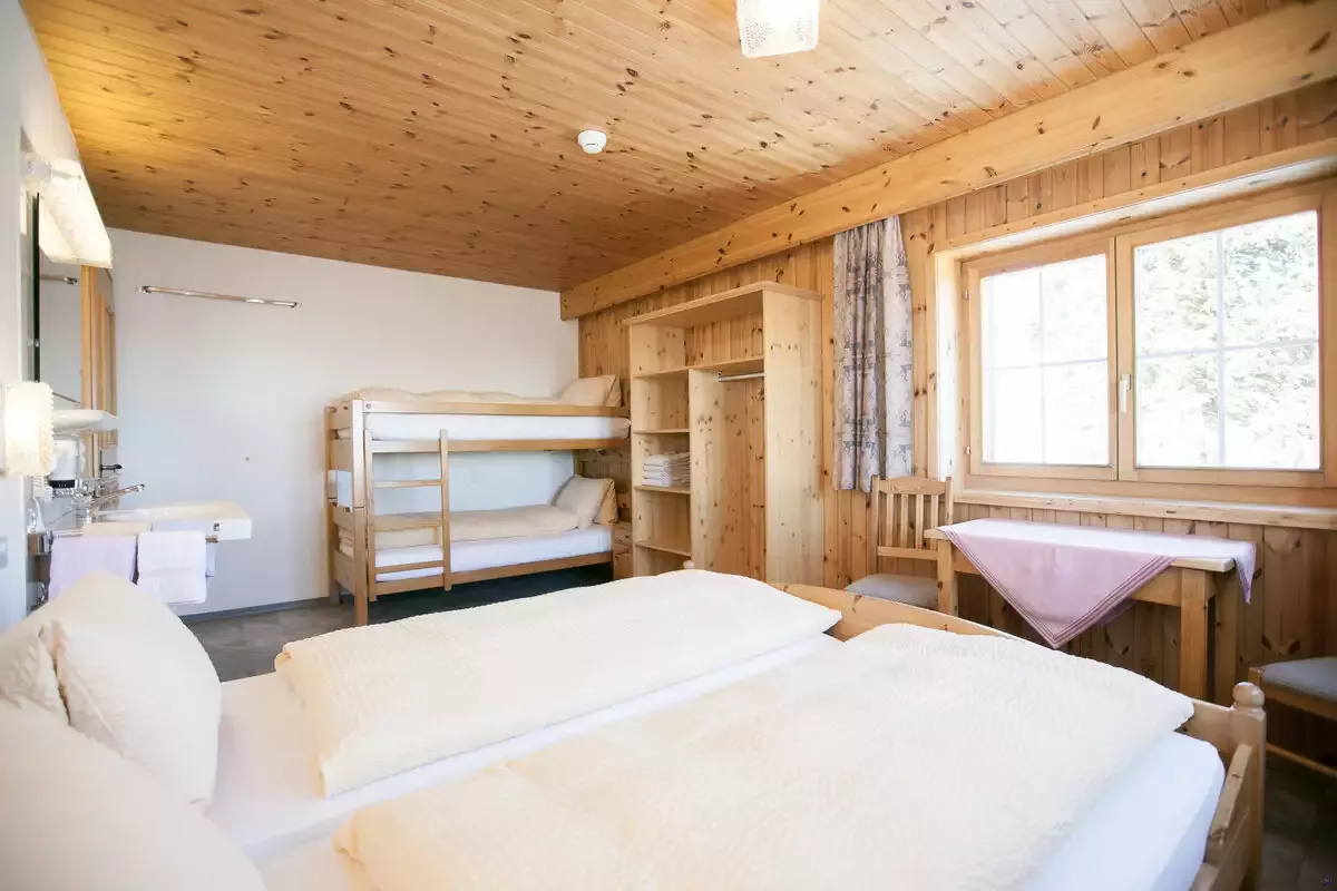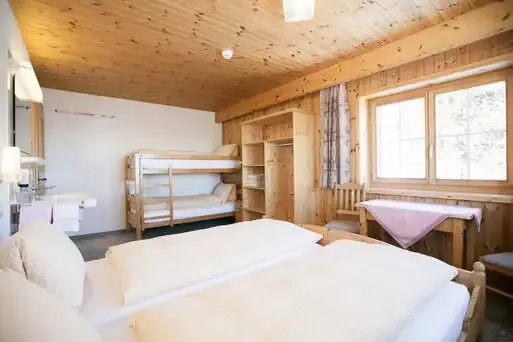 2 Familienzimmer mit 4 Betten (1 Doppelbett und 1 Etagenbett) mit fliessend Wasser, Etagendusche/WC