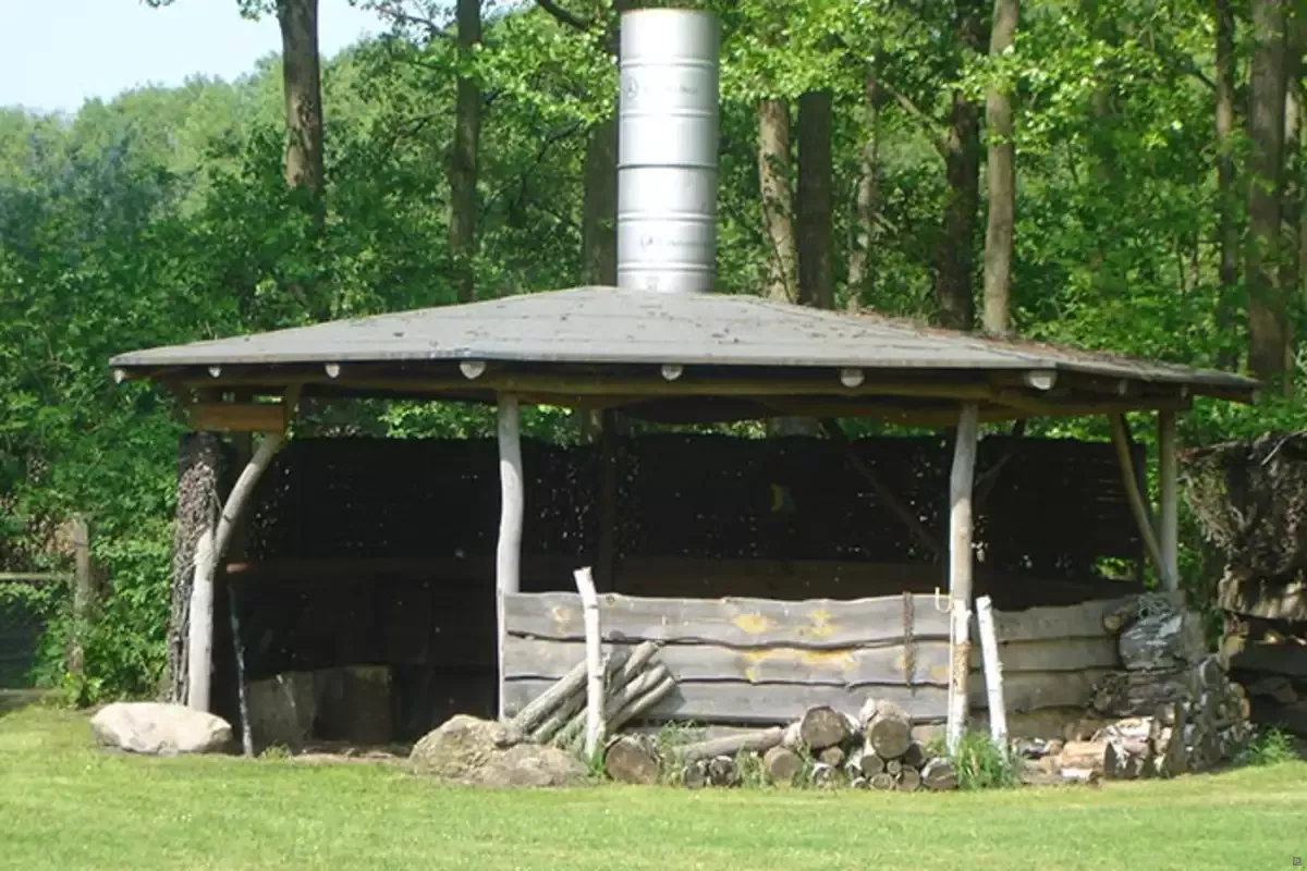Unter der überdachten Kochstelle ist das Kochen und auch das Sitzen um das Feuer noch gemütlicher und bei jedem Wetter möglich.
