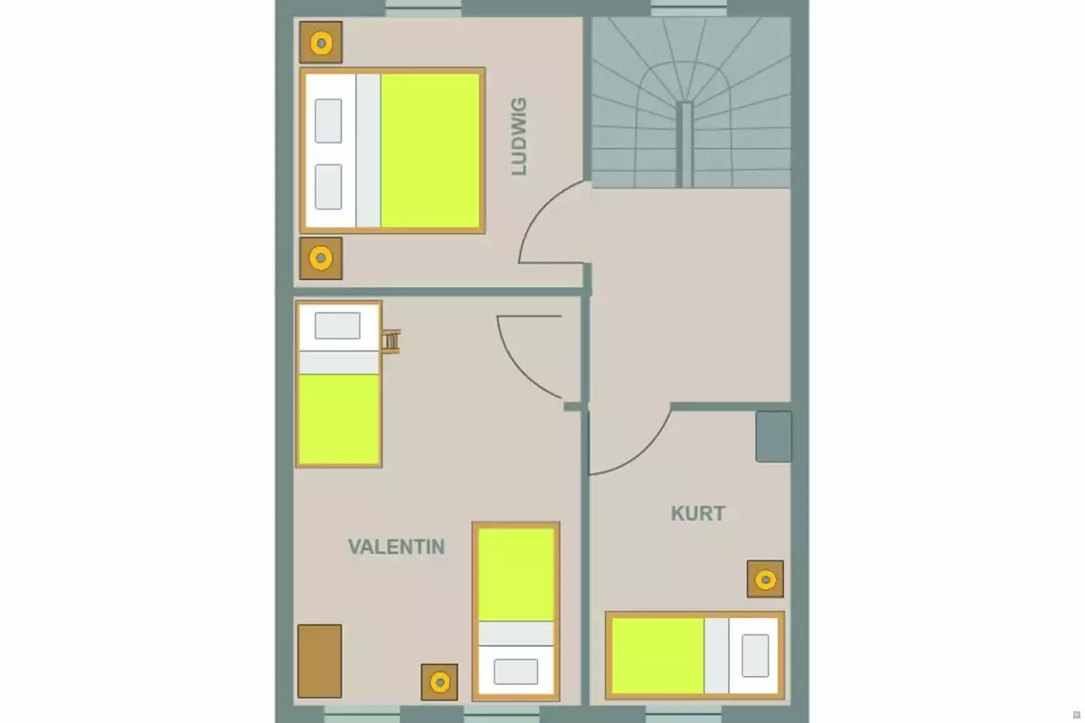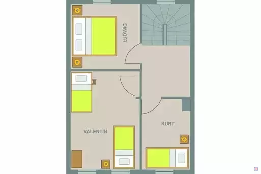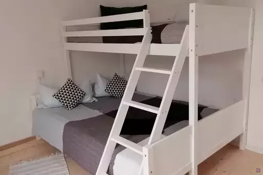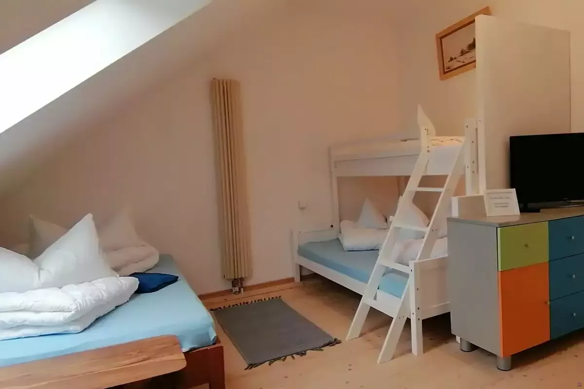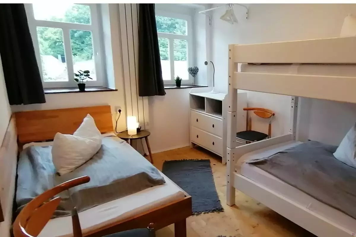 Es befinden sich 14 Schlafstätten - davon sind 4 Schlafplätze eher für Kinder geeignet - in 5 Schlafzimmern für große Familien, Gruppen & Freunde im Haus. Im EG ist ein Schlafzimmer, im 1 OG sind drei Schlafzimmer und im DG ein Schlafzimmer. Die Schlafzimmer sind entweder Einzel-, Doppel- oder Mehrbettzimmer und wurden mit viel Gefühl fürs Detail eingerichtet - jedes Zimmer besitzt seinen ganz eigenen Stil.
