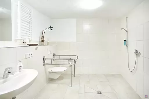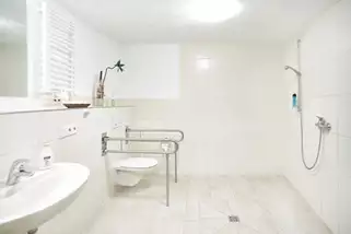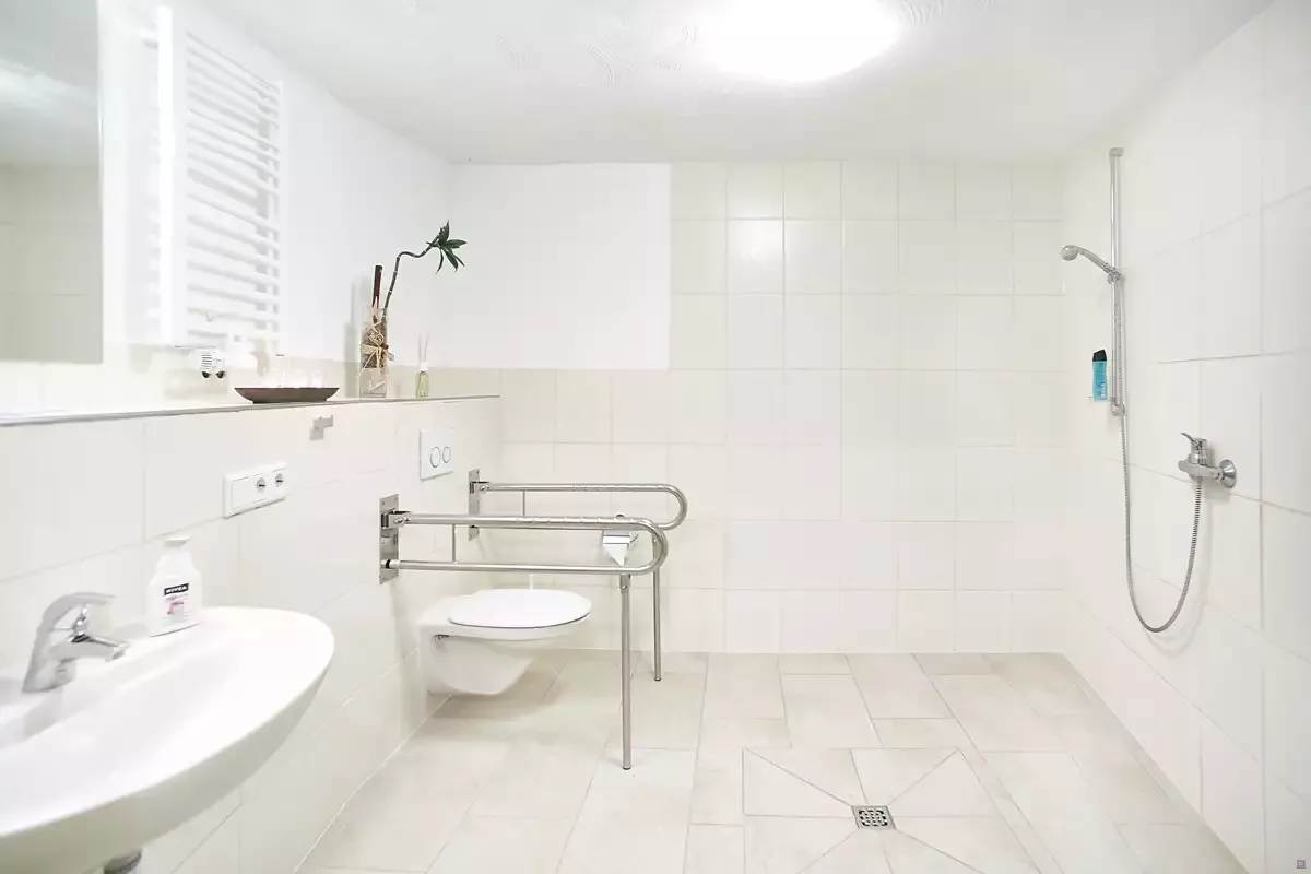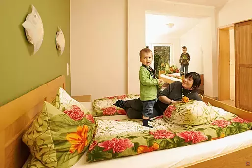 In der Alten Näherei (Typ 3) haben 10-16 Personen reichlich Platz. Die 215 m² sind aufgeteilt in ein Wohn- und Esszimmer, eine Küche mit Vorratsraum, fünf Schlafzimmer, fünf Bäder mit WC (2 Rollstuhlgeeignet), einem zusätzlichen WC und einen Flur. Das Ferienhaus Typ 3 ist ideal für Familientreffen, Vereinsausflüge und Gruppenreisen.