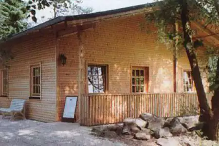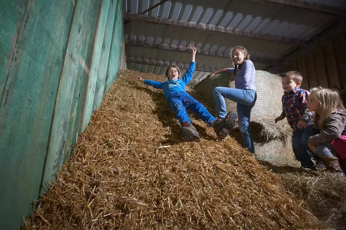 10 Häuser je 2-16 Personen, Blockhaus mit Küche, Vollpension auf Anfrage, Bauernhof, Streicheltiere, Planwagenfahrten, Grillabend, Spielplatz, Strohscheune, Spielscheune, Schwimmteich
