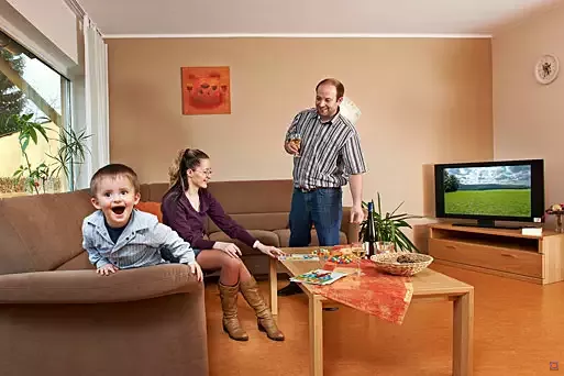In allen Häusern erwartet Sie im Wohnzimmer ein gemütliches Sofa mit einer schönen Aussicht ins Grüne. Abends haben Sie unter anderem die Möglichkeit, es sich vor dem Fernseher (26 Zoll Flachbildschirm) gemütlich zu machen und den Abend ausklingen zu lassen.