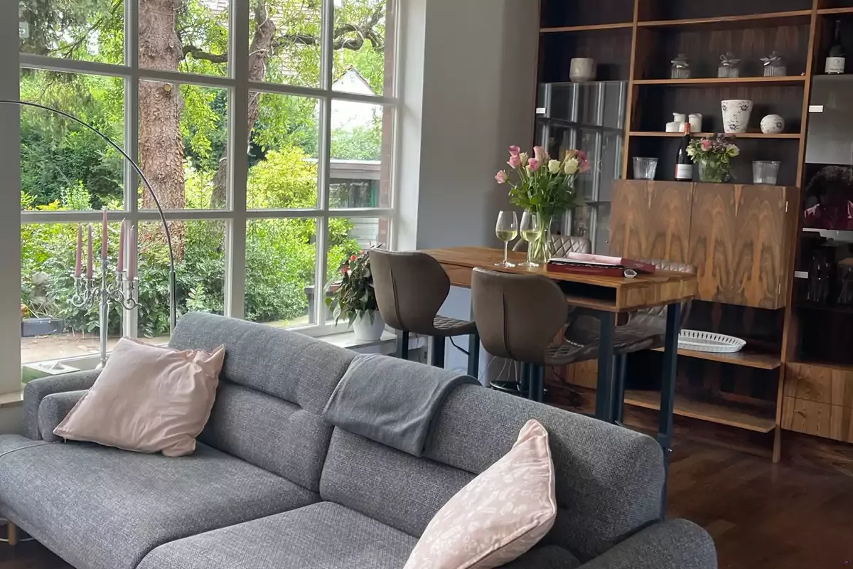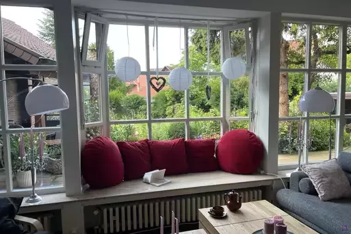 Die Wohnung erstreckt sich auf 200 m² im Erdgeschoss und weitere 100m², mit einem Wohn und Schlaftrackt im Erdgeschoss und ein weiterer Schlafbereich im Dachgeschoss. Im Wohnbereich haben sowohl Kinder als auch Erwachsene die Möglichkeit, in Ihrem eigenen Bereich eine schöne Zeit zu verbringen und Kicker, Gesellschaftsspiele oder eine (vor Ort buchbare) PS4 mit Playseat zu nutzen. Außerdem bietet der große Wohnraum genügend Platz um zu entspannen, gemeinsam zu Essen, den Abend ausklingen zu lassen und parallel einen angenehmen Blick auf den Garten zu haben.
