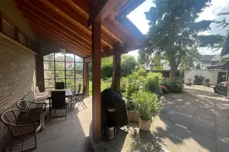 Die überdachte Terrasse und der große Gartenbereich laden zum Spielen, Entspannen, gemeinsamen Grillen und zu einem gemütlichen Ausklang am Abend ein.