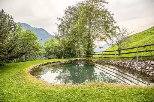 Im Außenbereich finden Sie einen gemütlicher Garten mit Spielwiese, Grill und einem schönen Teich (nicht zum Baden gedacht)
