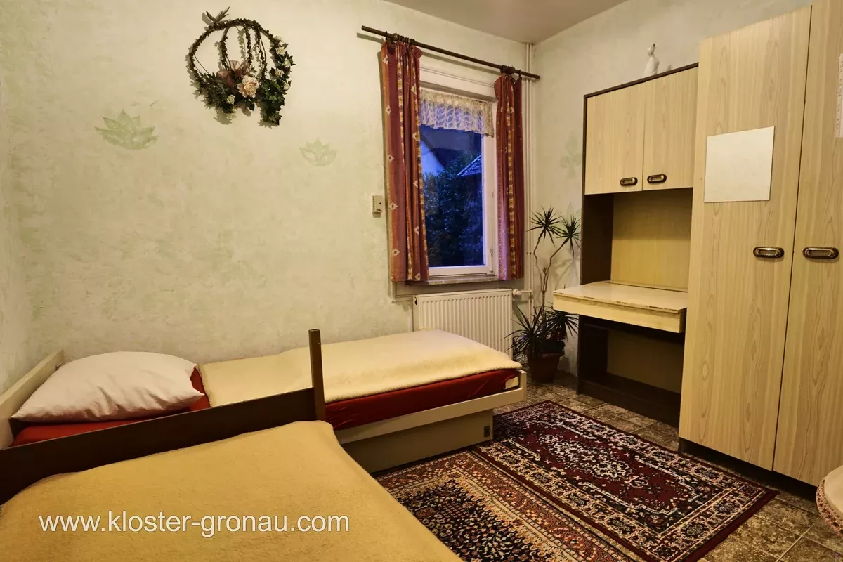 Das Klostergut Gronau hat sieben Schlafräume, zwei Achtbett-Zimmer im EG, ein Achtbett-Zimmer, ein Sechsbett-Zimmer und ein Zweibett-Zimmer 1-OG-Haupthaus, ein Sechsbett-Zimmer und ein Siebenbett-Zimmer im 1-OG-A. Alle Schlafräume, ausser das Zweibett-Zimmer, haben eigene Du/WC am Zimmer.