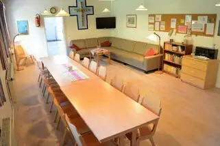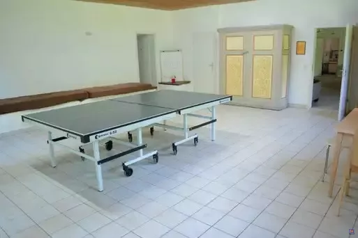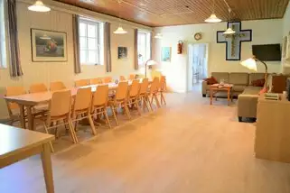 Die Unterkunft ist teilweise behindertengerecht: alle Räume, bis auf eine Stufe zwischen Gruppenraum und Küche