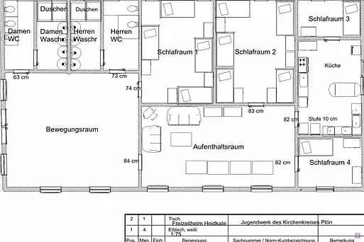 • 2 große Gruppenschlafräume mit 1 x 4 Etagenbetten = 8 Betten