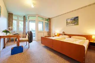 Die Unterkunft ist teilweise behindertengerecht: Foyer, Restaurant, Gästezimmer