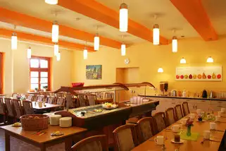 Wenn Sie die Friedenshöhe nicht mit Selbstversorgung buchen möchten, besteht die Möglichkeit, an der Verpflegung im zentralen Speiseaal im Haus Felsengrund teilzunehmen.