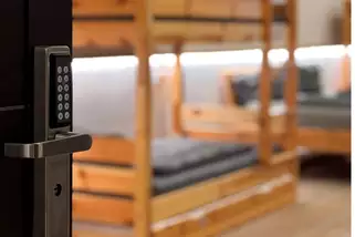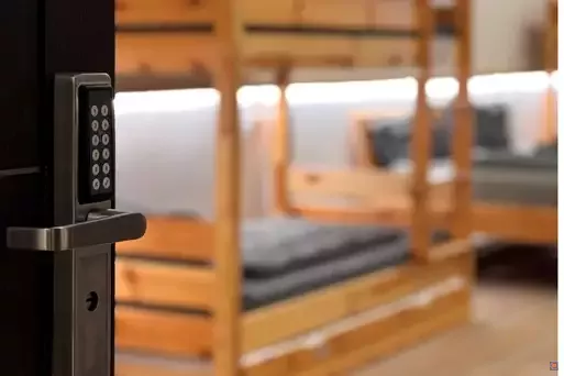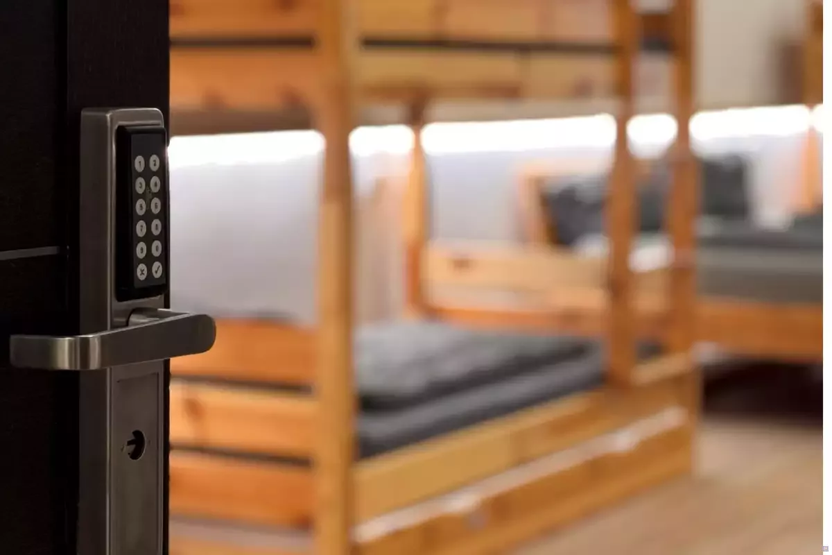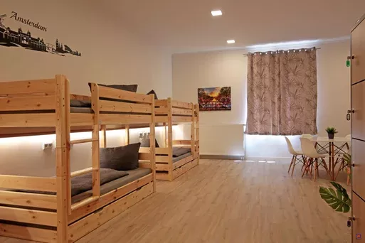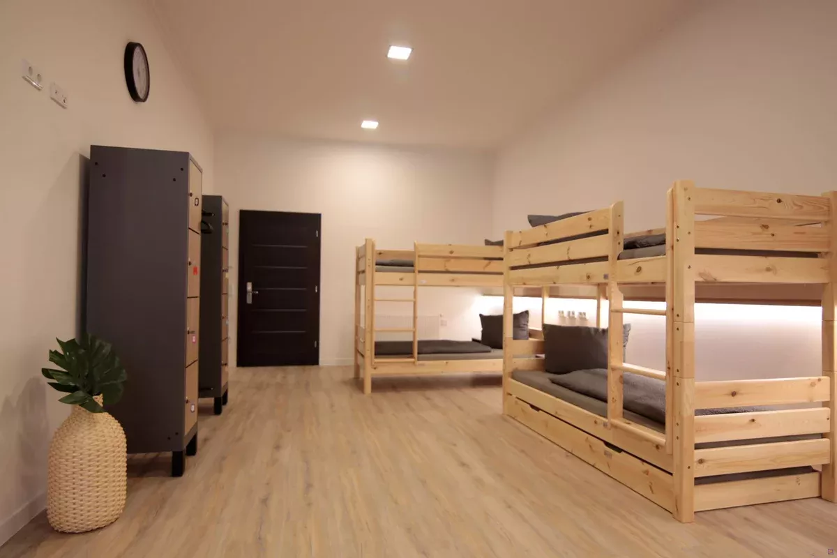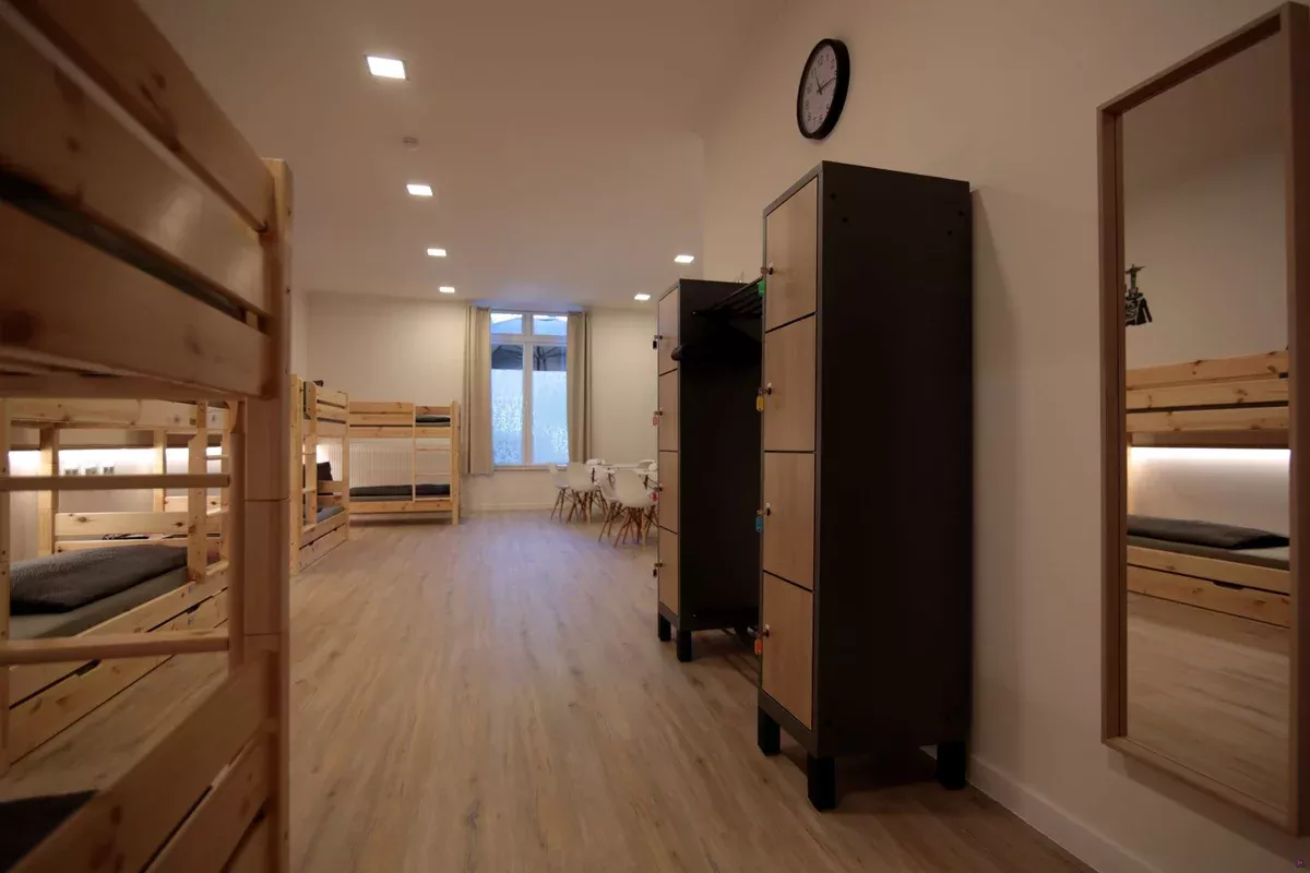 Die hellen Mehrbettzimmer sind großzügig geschnitten und mit stabilen Holz-Etagenbetten, bequemen Matratzen, Leselicht und Steckdosen an jedem Bett ausgestattet. Persönliche Schließfächer sorgen für Sicherheit, während große Fenster viel Tageslicht in die Räume bringen.