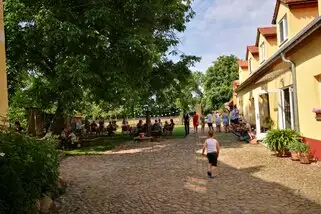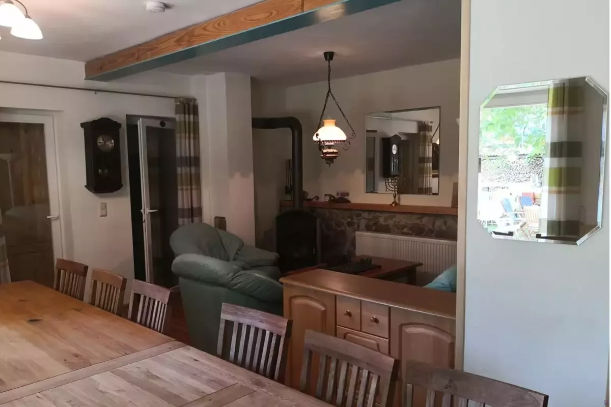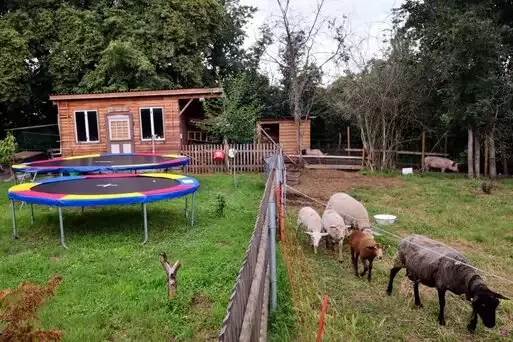 Ein tolles Haus, sehr liebevoll, heimelig (wie mein Bruder sagte) eingerichtet mit viel Holz und sauber. Die Küche ist sehr gut ausgestattet bis in die Details, was man brauchen könnte um für viele Essen zuzubereiten, bzw. Feiern auszugestalten. Wer ein schöne kleinere Gruppenunterkünft für eine Familienfeier etc. sucht, ist hier genau richtig. Die Hausverantwortlichen sind sehr sehr hilfsbereit. Man kann gut die Umgebung erkunden und ist sogar relativ schnell in Leipzig drinn, wenn man das will. Die Zimmer haben fast ausschließlich alle ein eigenes Bad. Top! Und sind zum Teil mit Aufbettungen variabell zu nutzen, auch ein Vorteil, gerade mit Kindern. Ein kleiner Kamin kann genutzt werden. Wir waren im Winter und es hat allen super gut gefallen und im Sommer ist es sicher nochmal schöner, mit dem tollen Aussengelände. Die Schafe gegrüßen einen zur Ankunft ;-)
