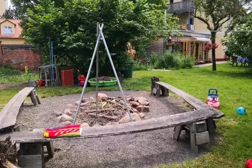Die Sanitäranlagen und die Kochmöglichkeiten befinden sich im Pfarrhaus bzw. Gästehaus. Eine Außendusche und eine Lagerfeuerstelle sind vorhanden.