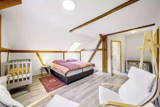Vier Doppelzimmer mit eigenem Duschbad befinden sich ebenfalls auf diesem Stockwerk. Zwei der Schlafräume verfügen zusätzlich über je ein Schlafsofa und ein Zimmer über einen Schlafsessel.