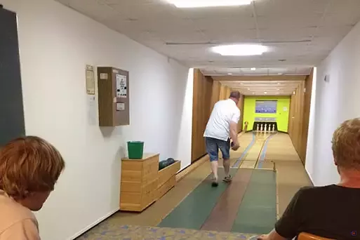 In der großen Eingangshalle im Erdgeschoss, einem beliebten Treffpunkt vor Aktivitäten, steht kostenfreier Kaffee und Obst bereit. Der Mehrzweckraum kann z.B. für Tanz, Bewegung oder Meditationen genutzt werden; Gymnastikmatten und -bälle sind vorhanden. Tischtennis kann kostenfrei gespielt werden, die Kegelbahn mit Sitzplätzen für 10 Personen ist ein optional buchbares Highlight für den Abend.