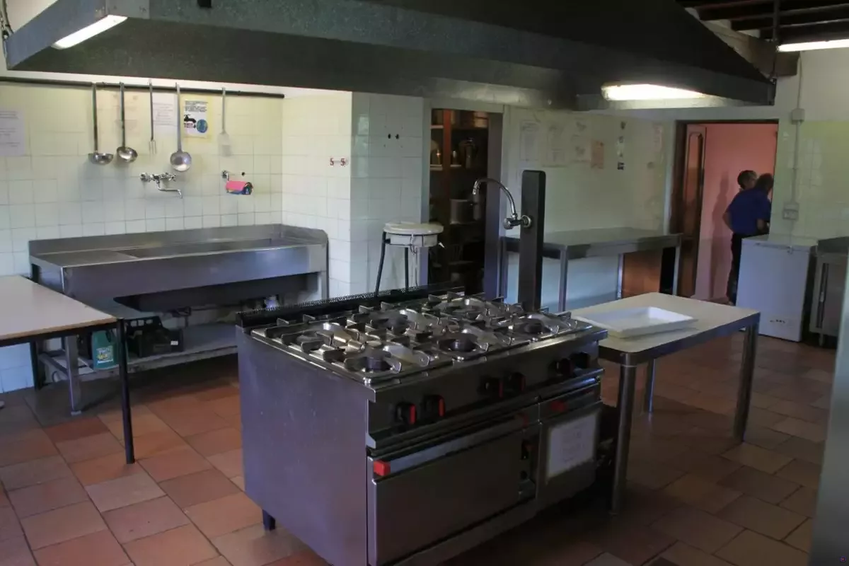 Im Erdgeschoss der Casa San Martino gibt es einen großen Speiseraum neben einer gut ausgestatteten Küche, die u.a. einen Gastronomieherd mit Backofen, eine Schneidemaschine, einen großen Kühlschrank und Gefrierfach beinhaltet. Ebenfalls im EG sind Duschen, Toiletten und ein 2-Bettzimmer. Im 1. und 2. Obergeschoss befinden sich die Schlafräume mit der Aufteilung 3x4, 4x6, 1x8 und 2x12 Betten.