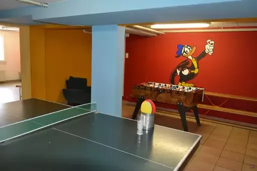 UG: Spielraum mit Tischtennisplatte und Tischkickertisch, Duschraum, Ankleideraum.