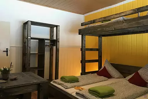 • 3. Haus: 2 Zimmer mit Doppelbett, Hochbett, Gästeliege bis 4 Personen,