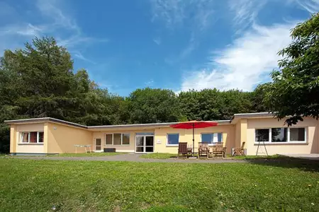 Das ebenerdige, barrierefreie Gästehaus hat neun Gästezimmer mit 36 Betten. Die großzügigen und komfortablen Zimmer sind variabel und praktisch ausgestattet. In jedem Gästezimmer befindet sich ein behindertengerechtes Bad. Für Seminare und Gruppenaktivitäten steht ein großer, heller Saal für bis zu 80 Personen zur Verfügung.
