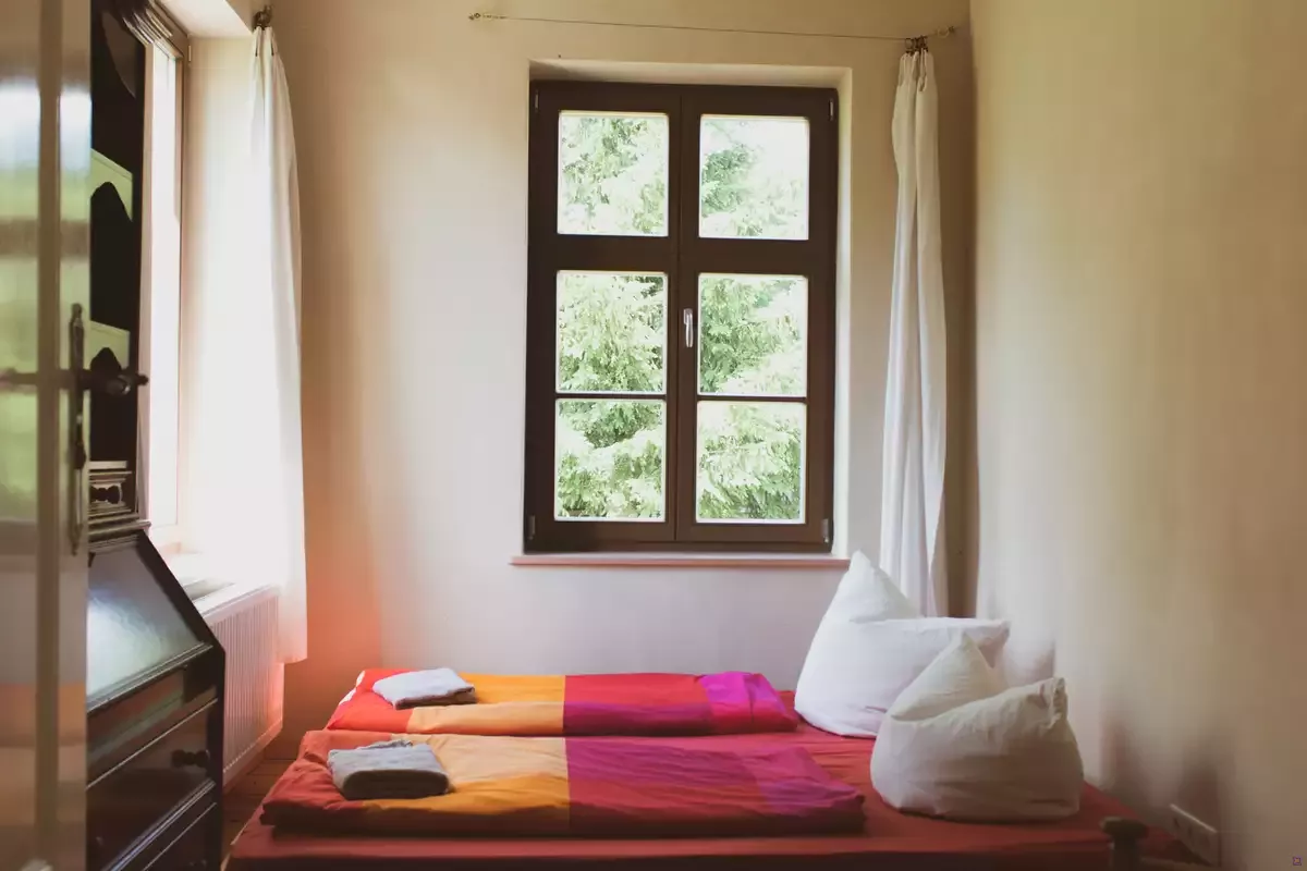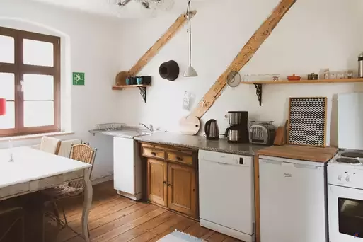 Sie schlafen überwiegend in Doppel- bzw. Dreibettzimmern und zudem gibt es ein Einzel- sowie ein Vierbettzimmer. Selbstverständlich können auch Einzelpersonen unsere Doppelzimmer mieten. Gartenmöbel sind vorhanden. Neben den großen Wohnzimmern und Wohnküchen im Haupthaus befinden sich im Loft ein 42 qm großer Seminarraum mit angrenzender großer Küche und einem Ausgang in den Südgarten, ein Bad im EG. Im OG sind 3 Dreibettzimmer sowie ein Alkoven für 2 Personen in der großen Wohndiele und ein weiteres Bad. Gartenmöbel sind ausreichend vorhanden. Feuerstelle, Feuerschale und Grills auch.