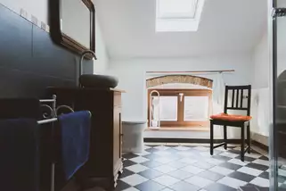 Alles sehr freundlich und entgegenkommend bei der Vermietung. Sauber, schöne Einrichtung. Stabiles / schnelles WLAN und Raum für Arbeitstreffen gut geeignet. Hausschuhe mitnehmen!