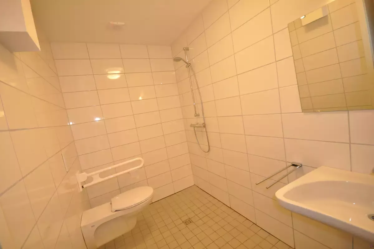 Die Unterkunft ist teilweise behindertengerecht: Es gibt ein barrierefreies Bad im Haus Eiland. Die Zimmer im Erdgeschoss sind normale Doppelzimmer mit Einzelbetten und für bewegliche Rollstuhlfahrer ok. Für Elektro- und große Rollstühle sind sie etwas eng, sie werden dann besser als EZ genutzt. Ein Pflegebett ist verfügbar.