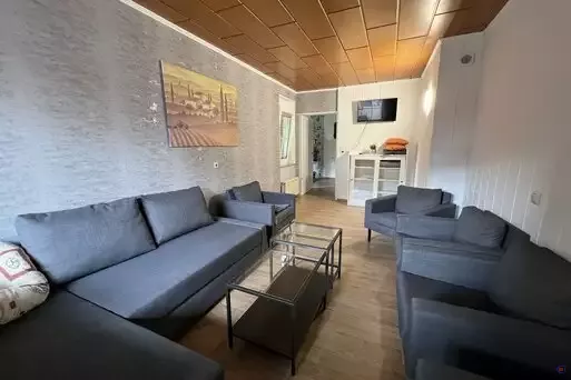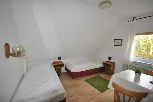 Kleines Gruppenhaus mit 9 Doppelzimmern (natürlich auch als EZ zu nutzen), alle Zimmer mit DU/WC und SAT/TV (32" Flachbild-TV). Ideal für Personen, die eine Unterbringung in Einzel- oder Doppelzimmern mit eigenem Bad/DU/WC bevorzugen.
