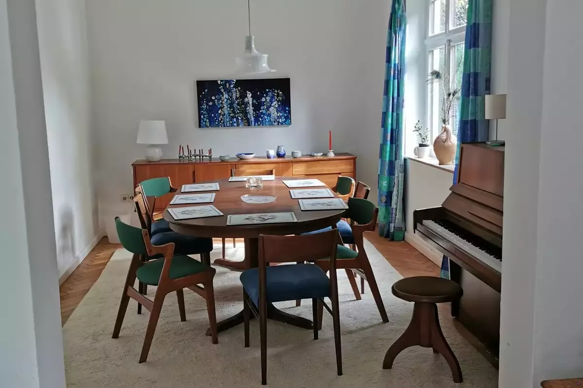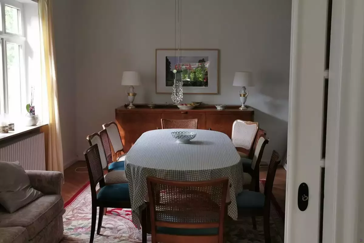 Das freistehende Haus (160 qm, ohne Untergeschoss und Bodenbereich) bietet ein ideales Ambiente für Familien- oder Freundestreffen und Workshops. Gästehaus genutzt werden. Das Haus befindet sich in ruhiger bevorzugter Wohnlage mit altem Baumbestand auf einem 1070 qm großen Grundstück mit ca. 5 Parkmöglichkeiten.