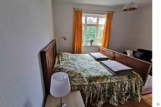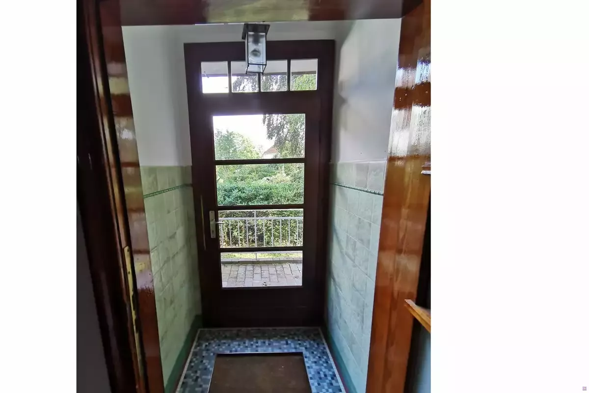 Das Haus Baujahr 1932 wurde teilweise im Stil der Zeit möbliert und mit passendem Geschirr und Besteck ausgestattet. Im Wohn- und Flurbereich finden Sie original Fischgrätparkett und Zimmertüren aus dem Entstehungsjahr. Die Gläser der Türen bestehen zum Teil aus geätztem Glas mit typischem Dekor der Dreißiger Jahre.