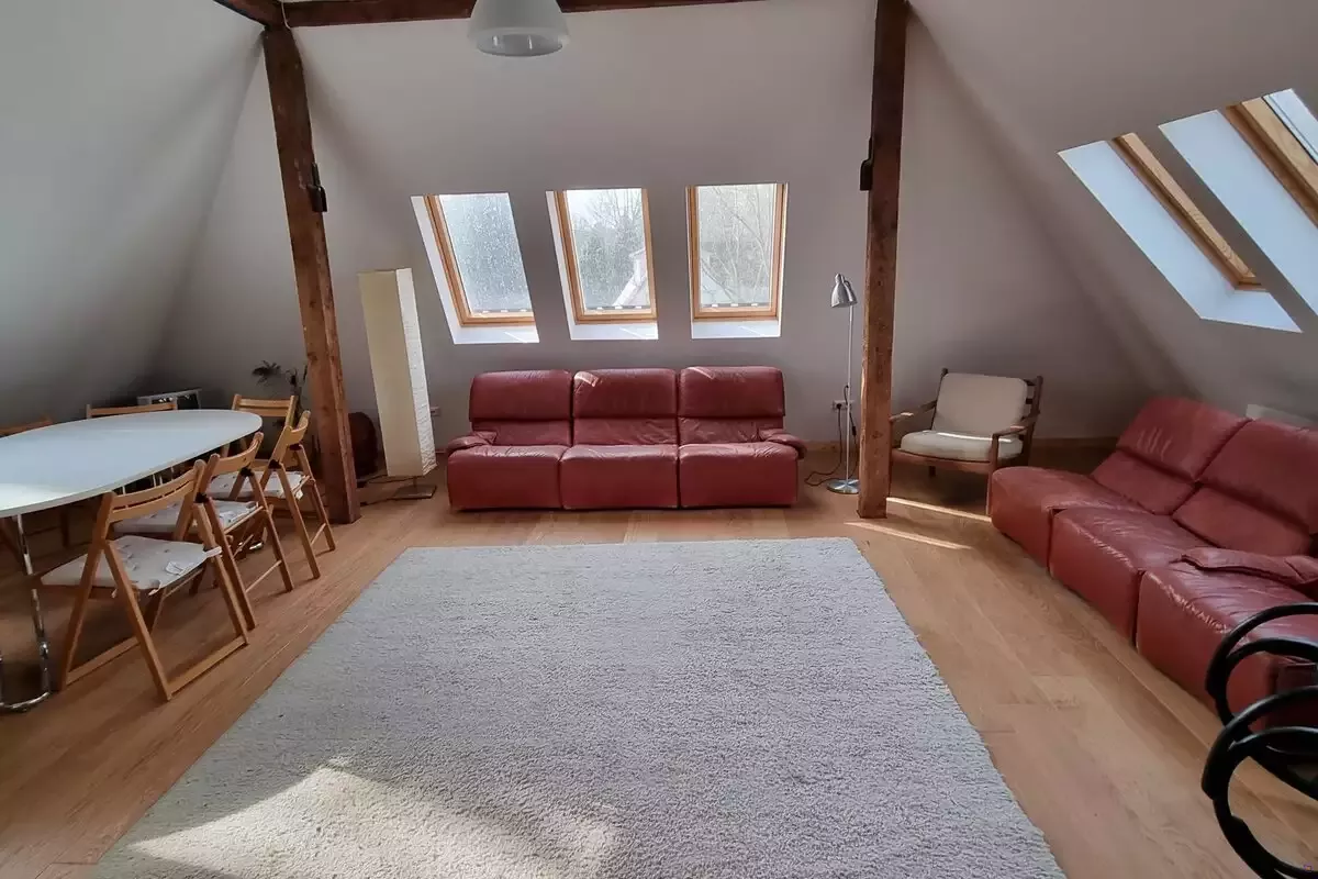 Der Aufenthaltsraum auf dem Dachboden (11 Veluxfenster) ist mit einem neuen weiteren Duschbad und 4-6 weiteren Schlafgelegenheiten ausgestattet.