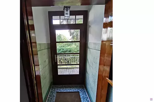 Eine kleine Terrassentür führt von hier in den vorderen Garttenbereich.
