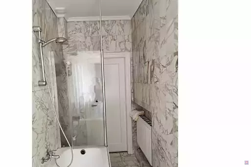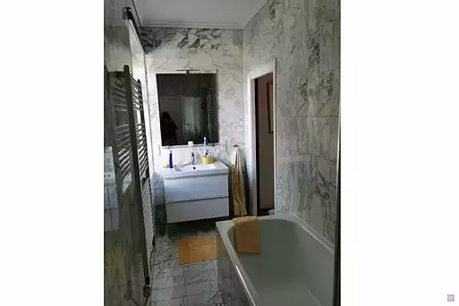 Das Bad im OG wie auch das Gäste WC sind mit Marmor ausgestattet. 2 neue Bäder und der Raum mit dem Fußballkicker liegen im Untergeschoss.