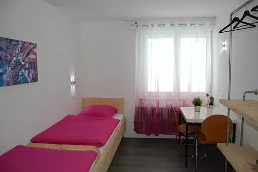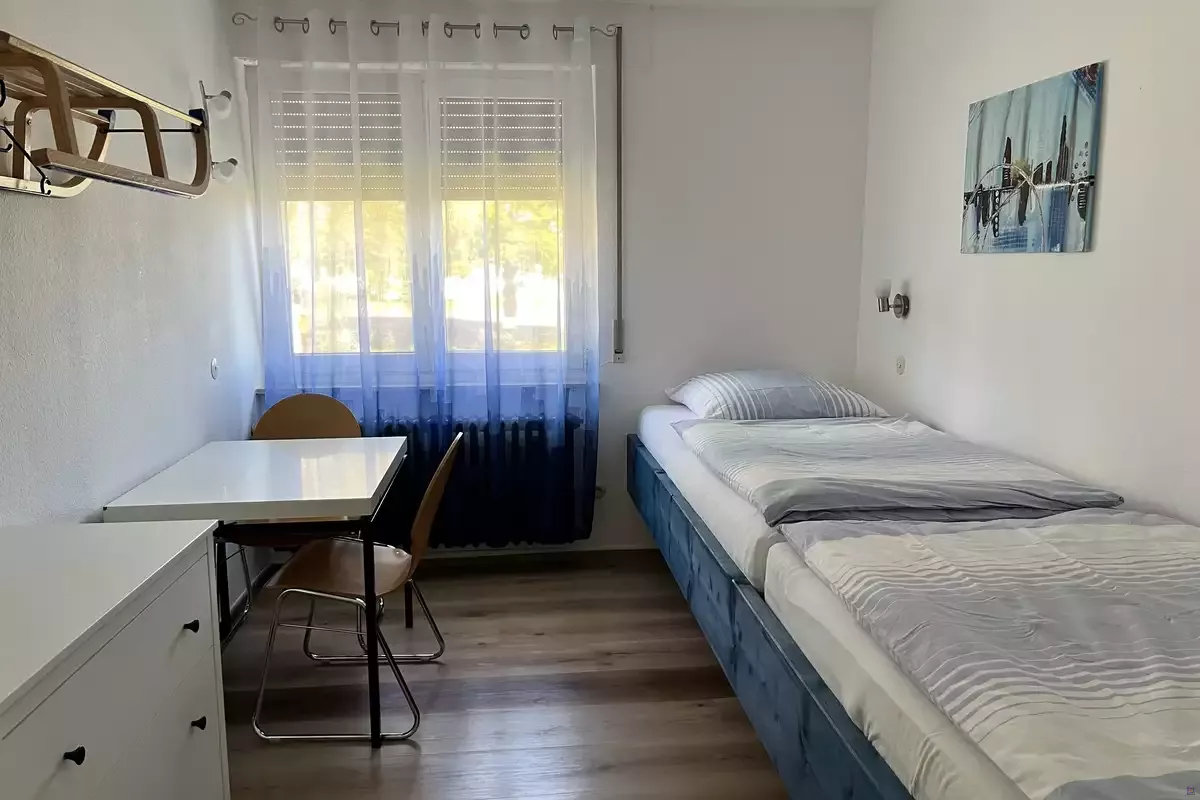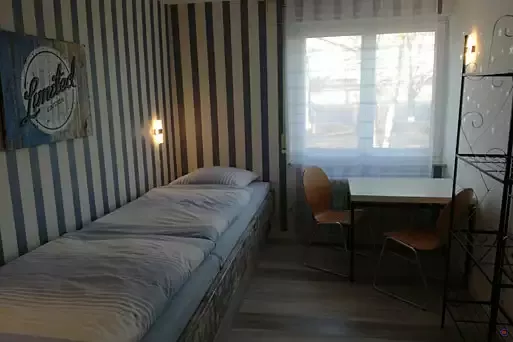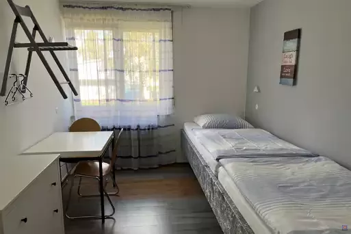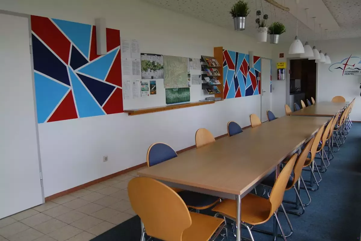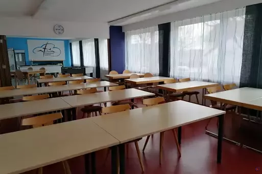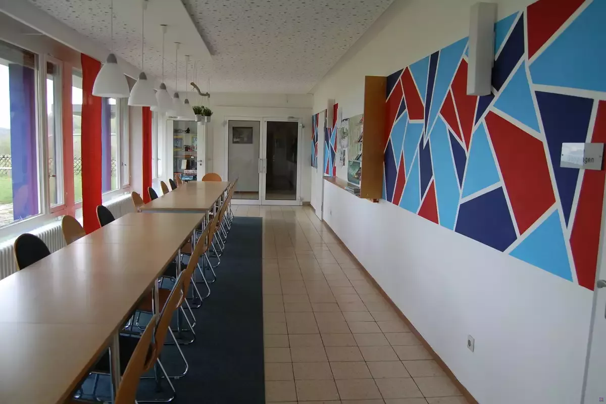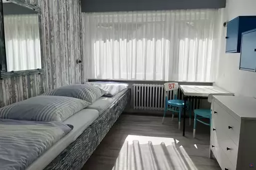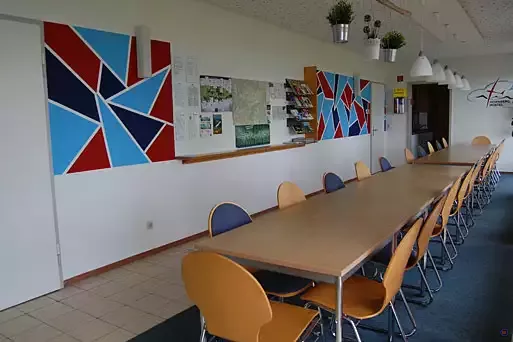 Schöne, helle 11qm große Doppel und Einzelzimmer. Sowie zwei neue 5 Bettzimmer mit je 22 qm. Alle Zimmer sind ausgestattet mit Bett, Tisch, Stühle, Schrank oder Kommode, Waschbecken und Heizkörper. Ein Klassenzimmer 50 qm mit Tafel, Tageslichtprojektor, Beamer, Schulbänke und Stühle. Aufenthaltsraum 50 qm mit Bücherei, Bluetooth Box, Getränkeautomat, Billard(gegen Gebühr) und Tischkicker.