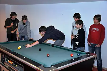 Zu Freizeitgestaltung steht im Erdgeschoss eine Billard-Lounch mit einer Sitzgruppe zur Verfügung. Bei schönem Wetter kann die Terrasse mit Tischen und Bänken ausgestattet werden.